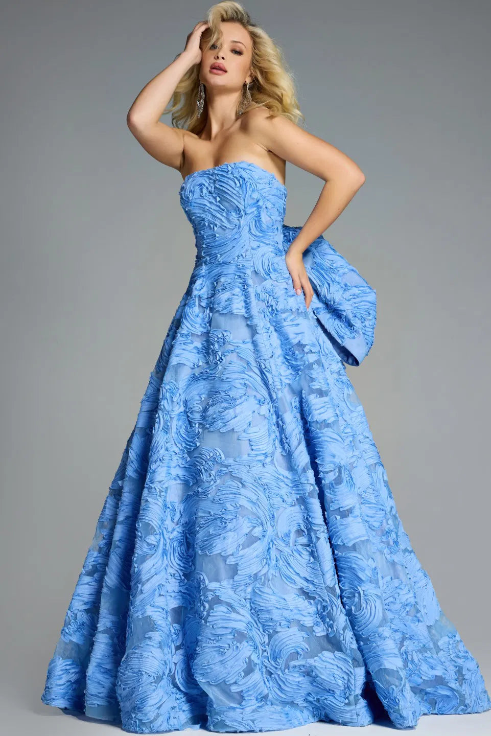 Jovani - 44114 - Strapless Evening Gown with Textured Floral Detailing
