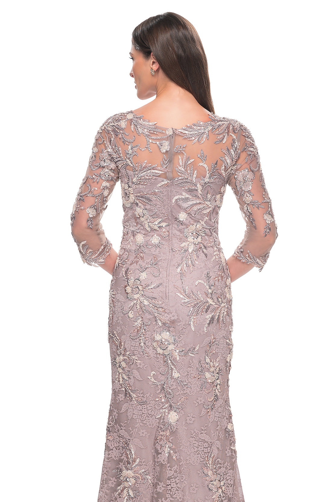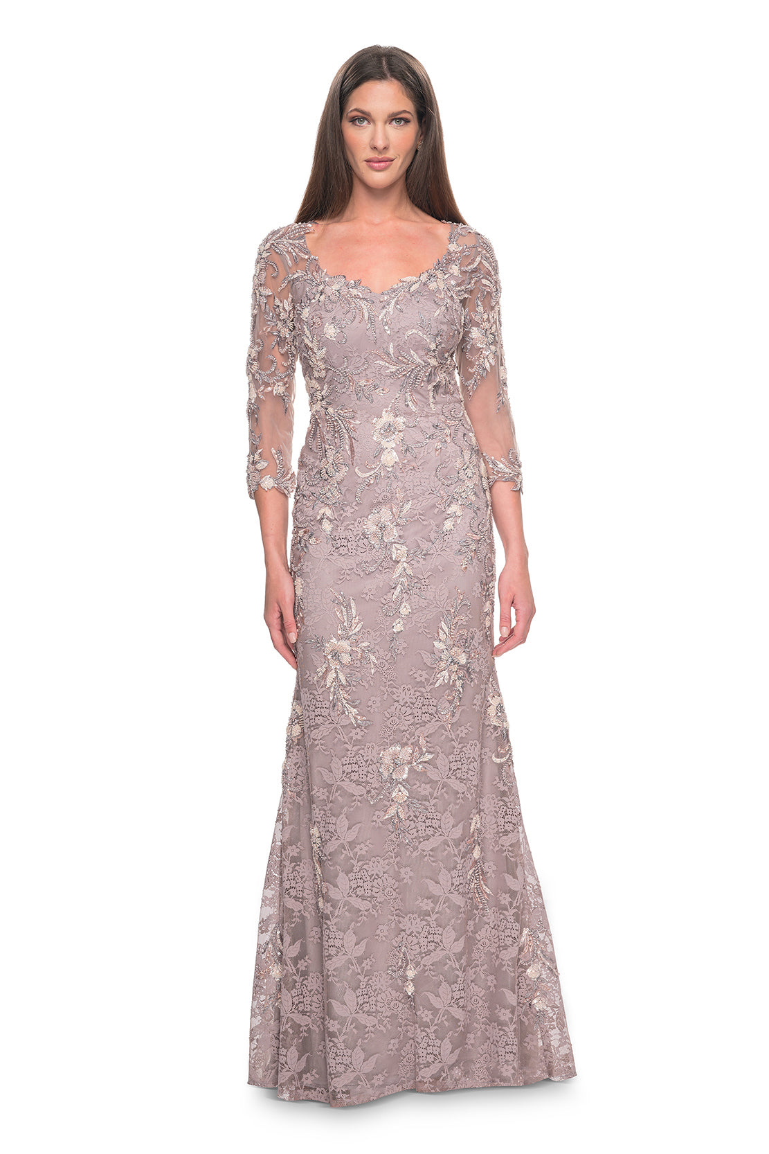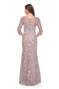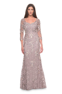 La Femme - 31796 - Three-Quarter Sleeve Lace and Beaded Gown